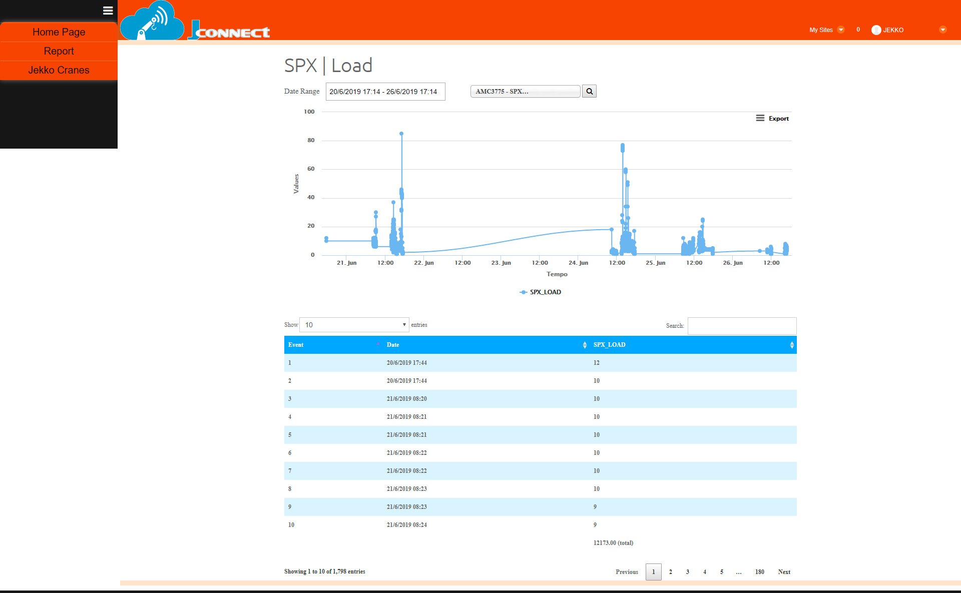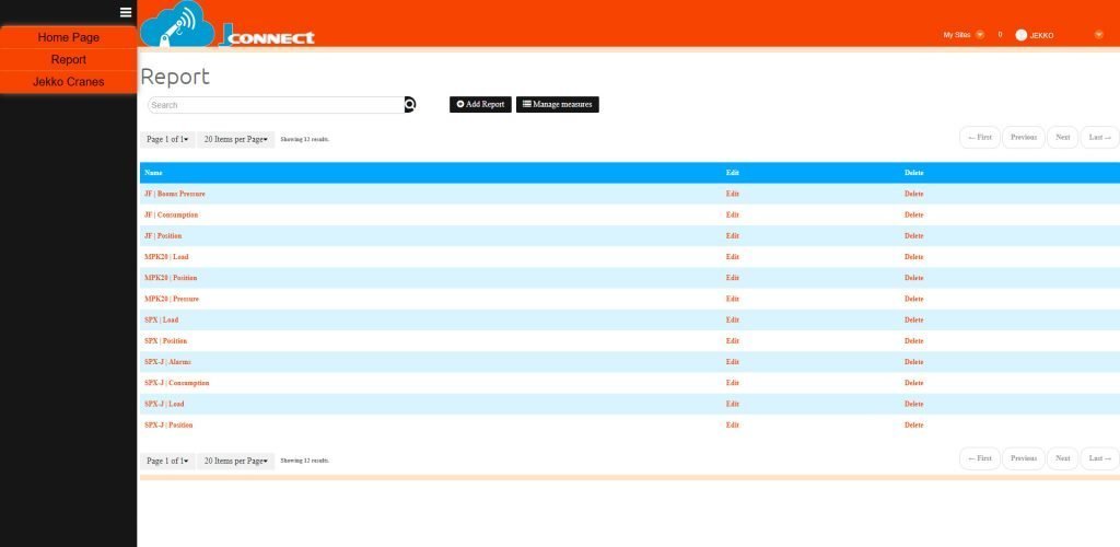 Tilastotiedot ovat saatavissa raportiksi analysointia ja arviointia varten. Mm. käytetty aika, virhekoodit, nosturin asennot, nostotaakan paino ja niin edes päin. Kaikki kerätty tieto on muutettavissa Excel muotoon.